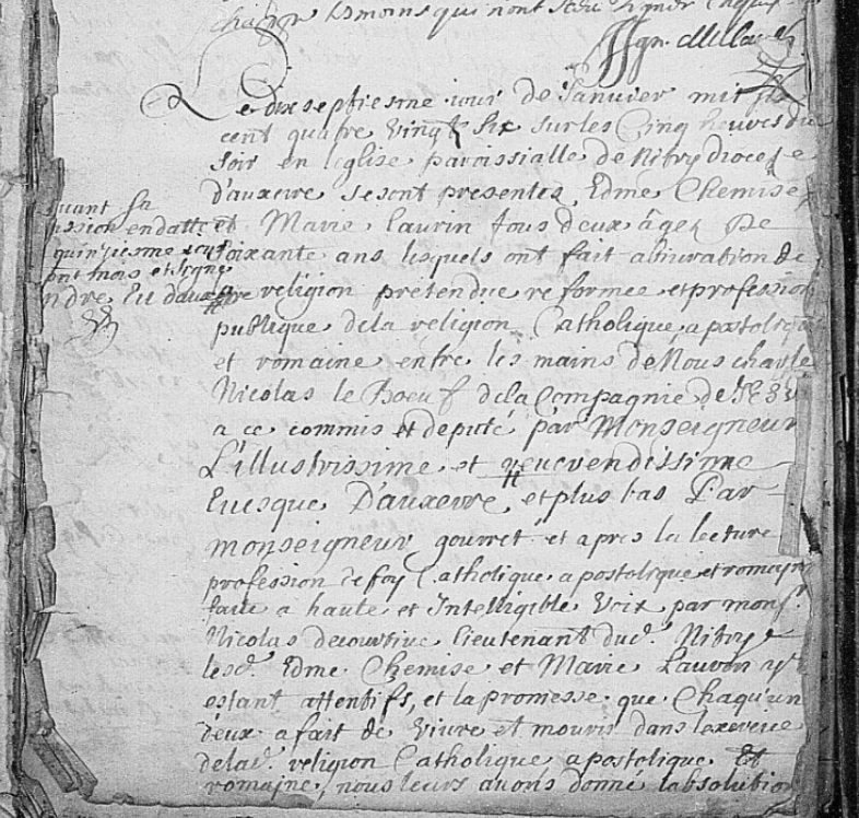 + [en marge] en vertu de la permission de M le vicaire général en datte du 24e janvier dernier signée Vaultier]