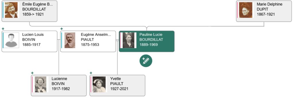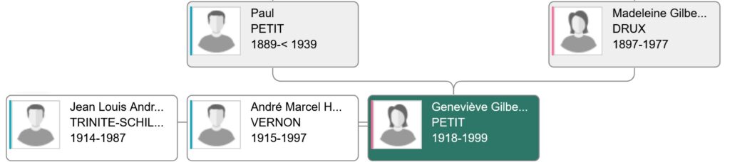 – Marcelle Henriette BOUJONNIER [née à Paris 08 le 04 12 1899–décédée à Avallon le 11 12 1995], fille de Édouard Gustave BOUJONNIER & de Clémentine ALAUX.