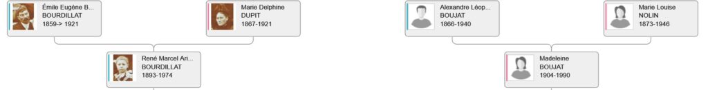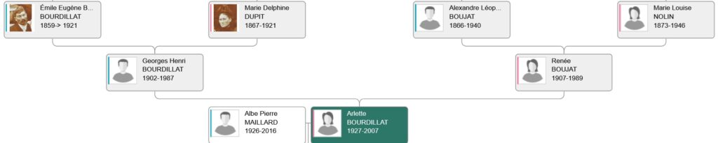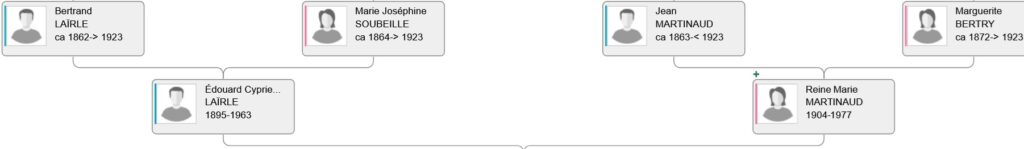 – Reine Marie MARTINAUD [née à Paris 05 le 23 03 1904– décédée à Auxerre le 18 07 1977], fille de Jean MARTINEAU, charcutier & de Marguerite BERTRY. Reine Marie MARTINAUD s’est remariée à Essert (Yonne) le 22 12 1963 avec Pierre BOURDILLAT.