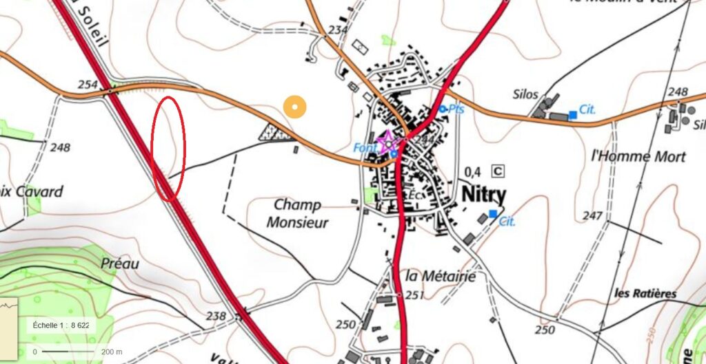 « Cette enceinte curviligne fait écho à d’autres enceintes fossoyées du même type repérées autour de Villiers-la-Grange, Oudun par exemple. Il semble que tous ces lieux, granges cisterciennes, étaient entourés de ce type d’aménagement » (Sources : Pierre Stanislas NOUVEL, professeur en archéologie de l’Université de Bourgogne, lors d’échange de courriels).