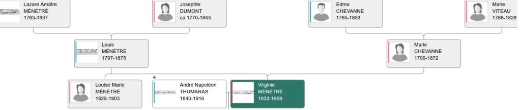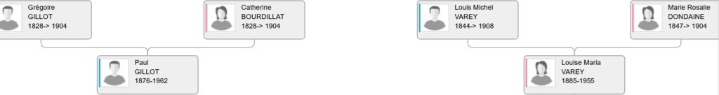 – Louise Augustine MÉNÉTRÉ [née à Essert le 03 09 1848–décédée en 1950 selon l’inscription sur sa tombe], fille de Pierre MÉNÉTRÉ laboureur, cultivateur (né à Essert 1813-dcd à Essert 1886) & de Françoise Angélique BOURDILLAT [né à Essert 1815-dcd à Essert 1894).