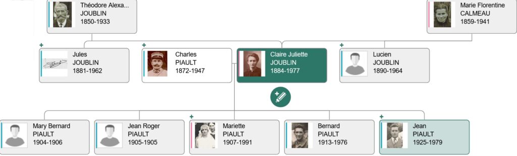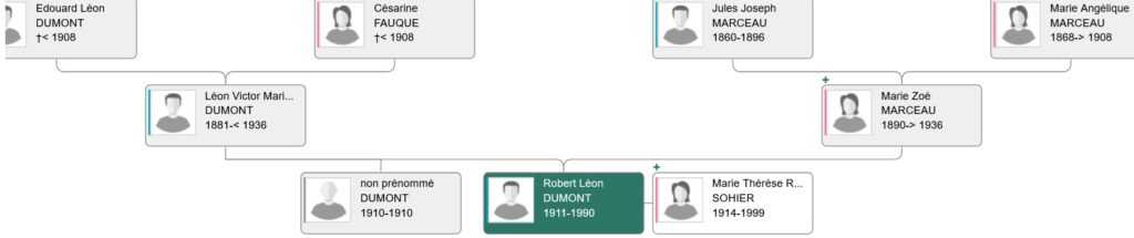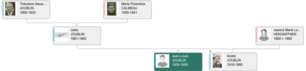 – Louise Antoinette CUSIN qu’il a épousé (selon mention marginale sur son acte de naissance) à Chichy (Yonne) le 27 02 1943. Cette année n’est pas consultable dans les Archives en ligne. Nous ne savons donc rien d’elle, décédée avant 1970 puisque n’étant pas enregistrée à l’INSEE.