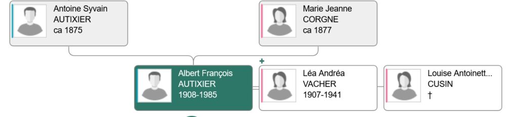 – Albert François AUTIXIER [né à Auxerre le 27 04 1908–décédé à Auxerre le 11 11 1985], fils de Antoine Sylvain AUTIXIER & de Marie Jeanne CORGNE. Il a épousé en premières noces Léa Andréa VACHER (née à Guillon Yonne en 1907-dcd à Montréal Yonne en 1941. Il est inhumé avec sa seconde femme :