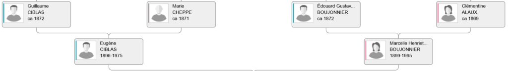 – Eugène CIBLAS [né au hameau du Grand-Bouchet à Domps (Haute-Vienne) le 13 03 1896–décédé à Essert le 12 10 1975 ], fils de Guillaume CIBLAS & de Marie CHEPPE. Et de sa femme :