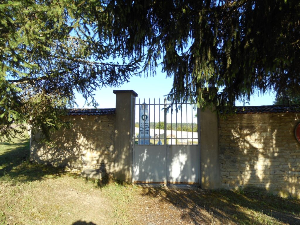 Dès le portail ouvert, le monument aux morts se dresse devant nous. Y figurent cinq noms des soldats envoyés à la boucherie par la république et par des généraux soucieux de l’avancement de leur carrière. Ce sont PREAU Félix, BERAULT Marie, CORNEVIN Julien, PERNET Gaston et ROUSSEAU Henri. Une plaque à la mémoire de Albert PIAULT tué en 1944 lors du débarquement en Provence (voir un l’article précédent). Il s’agit d’un monument aux « Morts pour la France » et non « Morts pour la république ». Aussi, si la municipalité avait été soucieuse de ses morts pour la France, elle y aurait ajouté ceux des campagnes de Napoléon 1er, et aussi Pierre Joseph DUMONT né le 28 décembre 1829 à Essert, fils de Lazare et de Adélaïde NOLIN, tué le 02 novembre 1854 à Sébastopol d’un éclat d’obus lors de la guerre de Crimée sous le second Empire. Mais ces morts ne faisaient plus partie de l’actualité du moment lorsque le monument a été érigé.