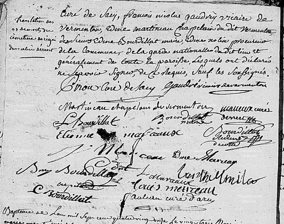 en présence de Messieurs Maheux curé d’Essert, Pirout