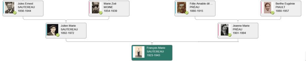 Jules PRÉAU est le frère de Félix Amable PRÉAU marié à Joséphine dite Nathalie BÉRAULT dont le fils Félix Amable dit Octave PRÉAU a été tué pendant la première guerre mondiale (voir précédemment).