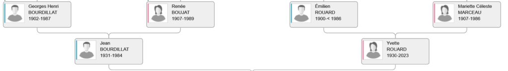 – Joseph Marie Pauline dit Eugène BOURDILLAT, laboureur, [né à Essert le 04 03 1820–dcd à Essert le 30 11 1889], fils de Lazare BOURDILLAT, cultivateur, vigneron, militaire pensionné, (né à Essert 1778-dcd à Essert 1825) & de Félicité BOURDILLAT (née à Essert 1793-dcd à Essert 1828).