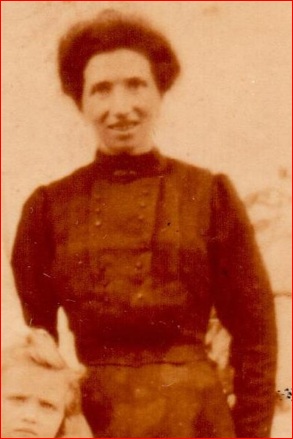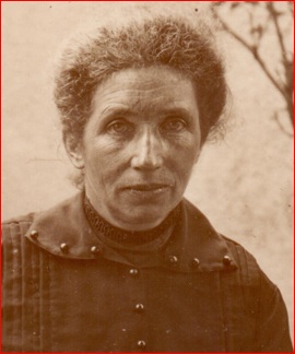 Marie Sautereau, épouse de Gustave Piault, devant sa maison à Essert :