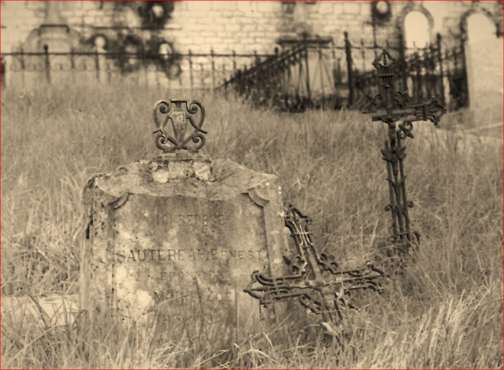 [*] – Ernest et Zoé ont été inhumés dans des tombes différentes. La photo de celle de Zoé n’a pas été retrouvée. Les deux sépultures ont été relevées, les restes placés dans la tombe à Sacy de leur petit-fils Joseph Louis Sautereau (1931-2004), dont photo publiée sur Geneanet :