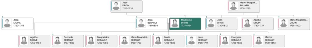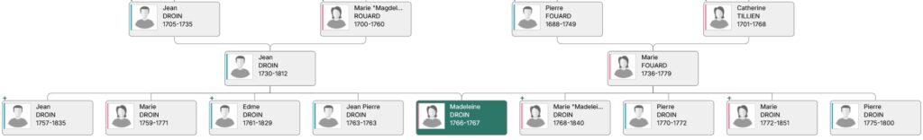 Après ces deux couples de la branche COLLIN mariés à des MINÉ, remontons le temps d’une génération pour nous retrouver au même niveau générationnel que le premier couple étudié Jean COLLIN / Philiberte TILLIEN