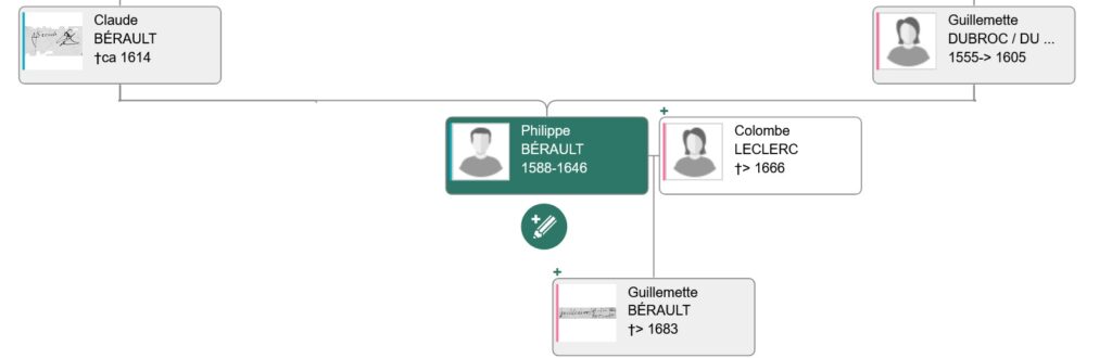 Guillemette BÉRAULT sa fille est marraine en 1628 à Sacy d’un enfant BÉRAULT. Dans cet acte Philippe BÉRAULT est qualifié de « Noble» et de « Voyer pour le Roi à Auxerre ».