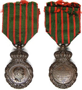 « La médaille de Sainte Hélène, créée par Napoléon III,récompense les 405000 soldats encore vivants en 1857qui ont combattu aux côtés de Napoléon 1er pendant lesguerres de 1792-1815. »