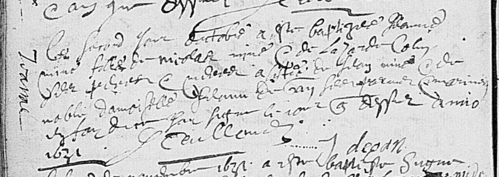 — Lazare COLLIN : (femme) [ancêtre] : baptisée : Sacy 27 04 1607, décédée : après le 30 07 1680 (son acte d’inhumation n’est pas dans les registres). Elle a épousé avant octobre 1631 (date de naissance de son premier enfant connu) :