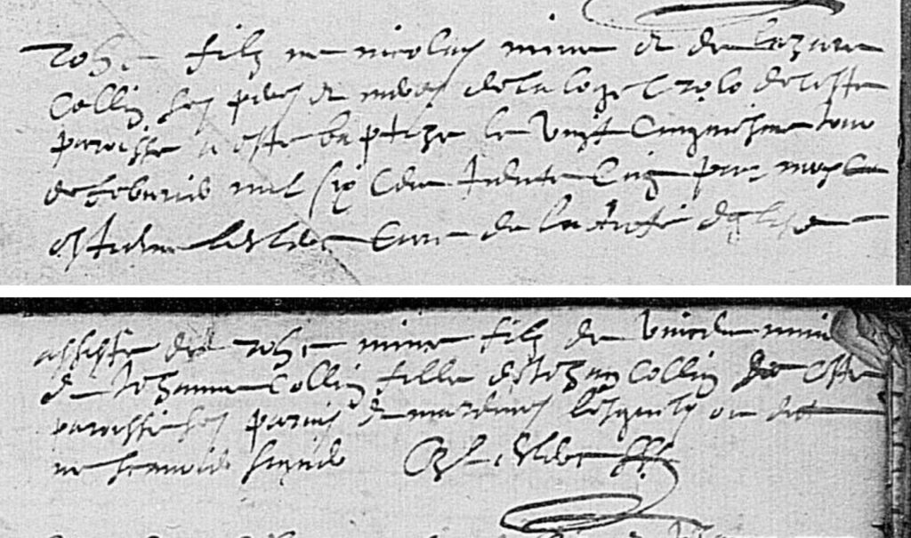 Sur leurs huit enfants, le premier étant « Jehan COLLIN » qui a été mentionné plus haut avec la transcription de son acte de baptême, quatre fonderont une famille. Deux d’entre eux [dont un ancêtre] épouseront une fille du bourg et tout laisse penser qu’ils y resteront.